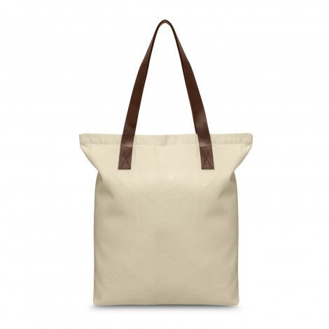 **Features:** Robust tote bag with a base gusset for added capacity which is manufactured from 280gsm natural heavy cotton canvas. It has a zippered top closure and on-trend long brown PU handles which are ideal for carrying it on a shoulder.