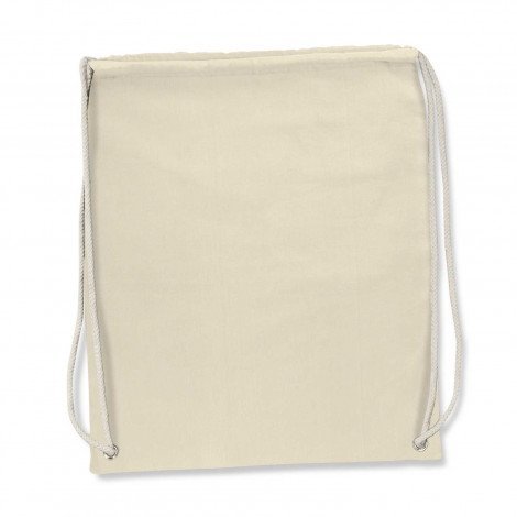 **Features:** 140gsm cotton backpack with white drawstrings and metal eyelets at the base for added strength. It can be branded on both sides in full colour and the stitching will match the main branding colour unless requested otherwise. A production lead time of 20 working days applies to this product.