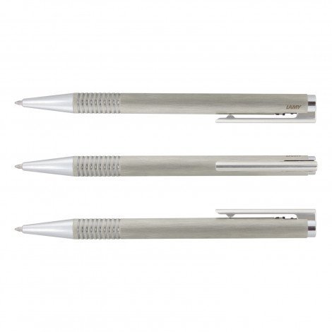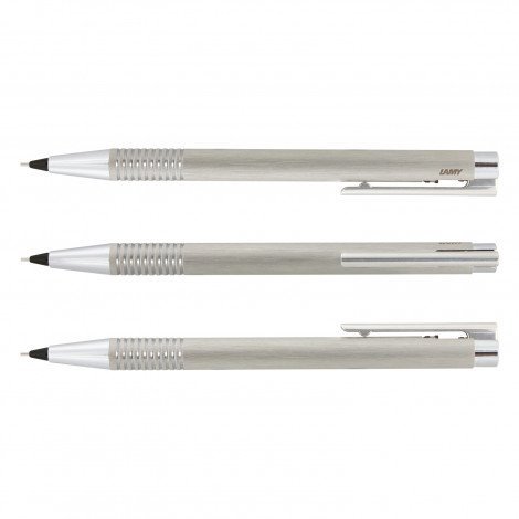 **Features:** Superb pen and pencil set featuring a brushed stainless steel retractable ball pen delightfully partnered with a matching mechanical pencil. Both have a finely tuned, spring-loaded metal clip and matching shiny chrome accents. The ball pen has a black LAMY M16 refill with 8000 metres of writing ink and a tungsten carbide ball for improved writing quality. The pencil has a 0.5mm LAMY M41 HB lead refill and both barrels laser engrave to a natural etch. Logo is 100% made in Germany with the LAMY brand tastefully inscribed on the upper barrel and the set is beautifully presented in a LAMY gift box.