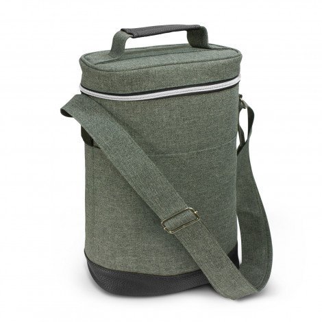 **Features:** Nirvana is where fashion meets function and this modern wine cooler bag has all the hallmarks of impeccable style and superior quality. It has thick PE foam insulation encased in a water-resistant PEVA inner liner. The outer construction is poly-canvas with an on-trend heather style finish. Other features include an adjustable shoulder strap, a carry handle, a slip pocket on the front and a top closure with a smart electroplated silver zip.