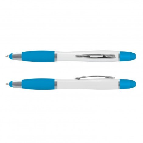 **Features:** Twist-action plastic ballpoint pen with a white barrel, a soft-touch grip and shiny chrome trim. It has a stylus for use with touch screens and a yellow wax highlighter which will never dry up. Vistro has a black refill with 600 metres of German manufactured Dokumental ink.